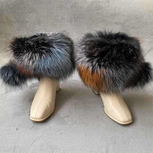 Jaxmonoy Women Winter Fashion Real Leather And Fluffy Real Fur Gloves