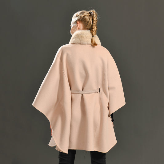 Jaxmonoy Plover Cashmere Coat With Real Fur Collar And Leather Buckle