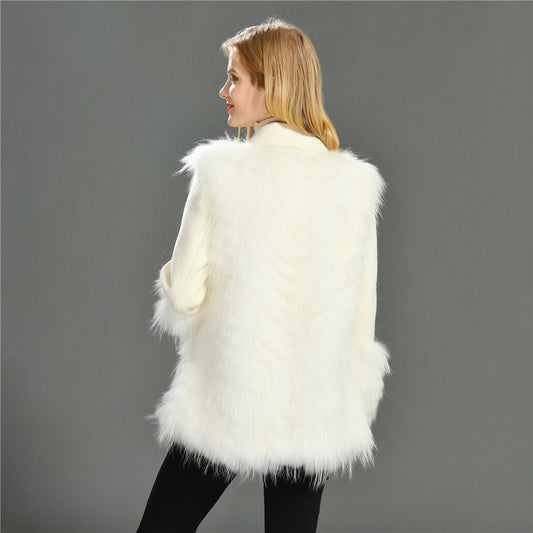 Jaxmonoy Real Fur Cashmere With Comfortable Fur Collar And Cuffs