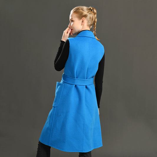 Jaxmonoy Women Cashmere Vest Modern Coat With Belt Outwear