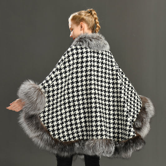 Jaxmonoy Autumn and Winter Outerwear Cashmere Coat With Cloak Real Fox Fur
