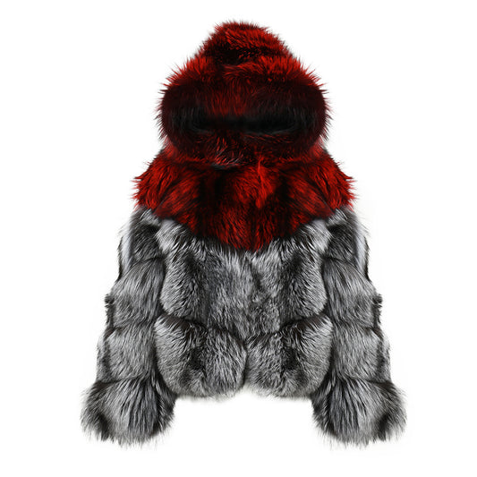 Regular Length Real Sliver Fox Fur Coat With Hood Design Wholesale Fashion Women's Winter Fur Coats