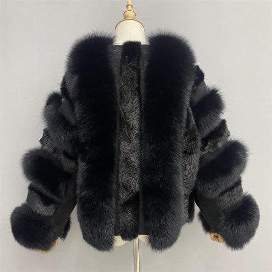 Fashion Genuine Fluffy Fox Fur Coat Winter Real Fox Fur Tails Coat