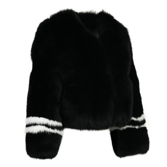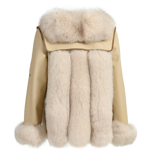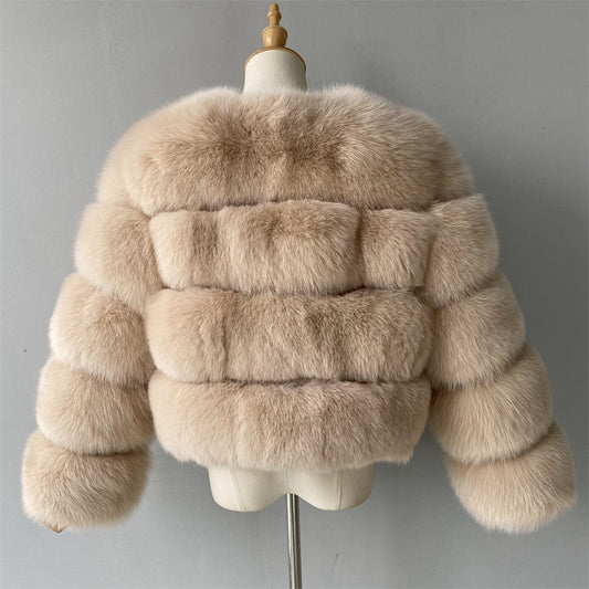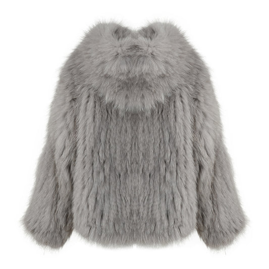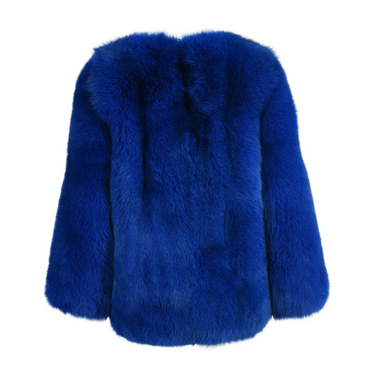 Crew Neck Fluffy Real Fox Fur Coat Custom Color for women