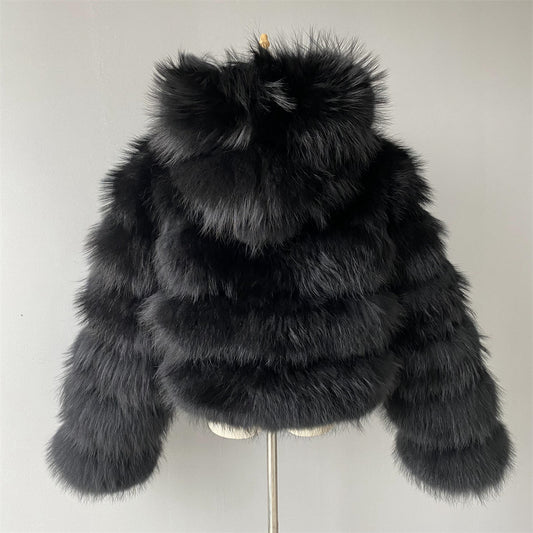 Ladies Regular Length Real Fox Fur Coat With Hood Design Winter Women Custom Fox Fur Coat