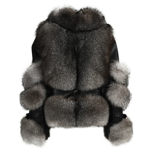 Winter Thick Windproof Real Fox Fur Coat With Zipper And Belt Design Women Genuine Leather Fur Jacket