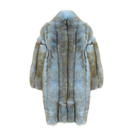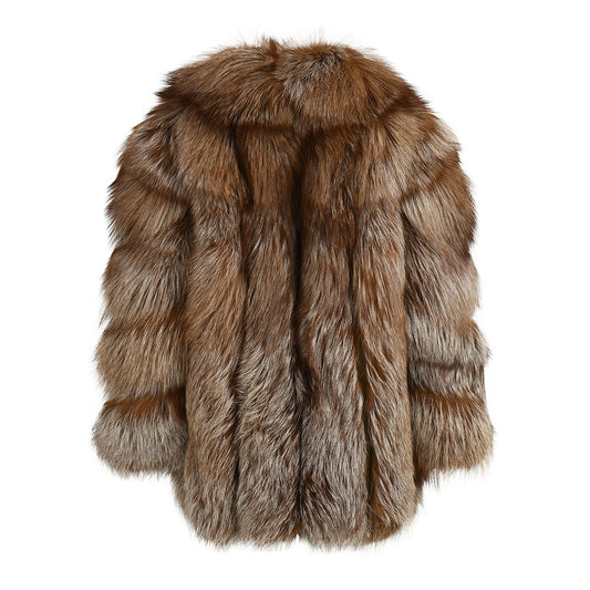 Crew Neck Ladies Real Fluffy Fox Fur Coat Custom Plus Size Coats
