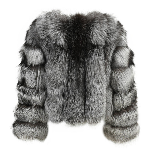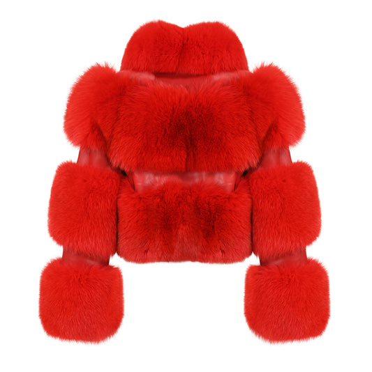 Winter Warm Real Fluffy Woman Cropped Fox Fur Jacket