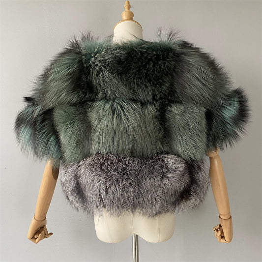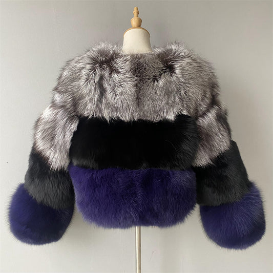 Mixed Color Crew Neck Cropped Real Fox Fur Coat Coldproof Winter Genuine Fox Fur Coat Women Real