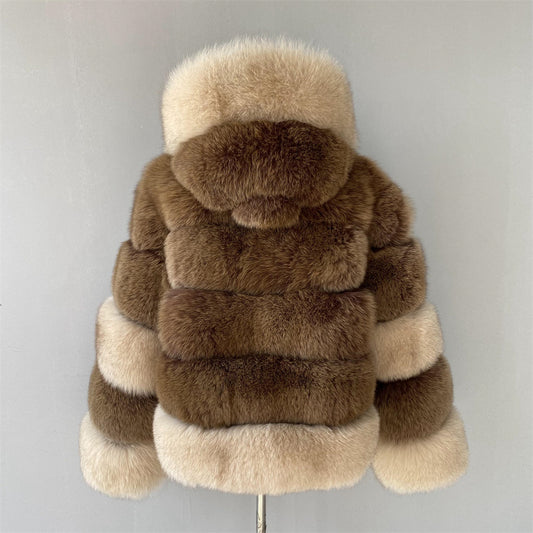 Mixed Color Real Fluffy Fox Fur Coat With Hood Design Wholesale Popular Winter Clothes For Women