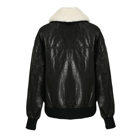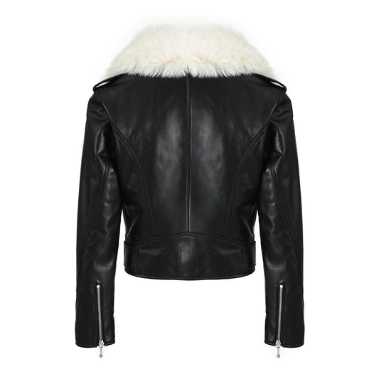 Real Leather Jacket With Detachable Sheep Fur Collar
