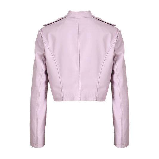 Cropped Real Sheepskin Leather Jacket Heart Design