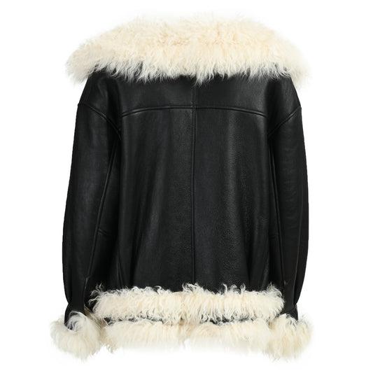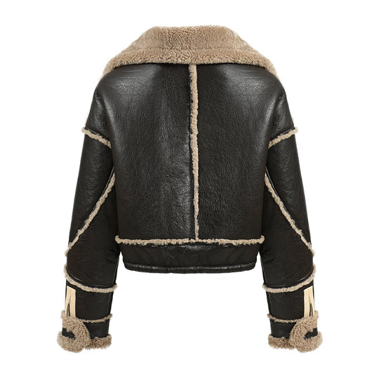 Cropped Shearling Coat With Leather Lining Jacket For Women