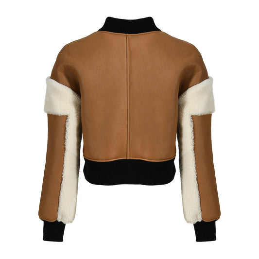 Real Sheepskin Leather Jacket With Sheep Fur Lining Cropped Genuine Shearling Womens Jacket