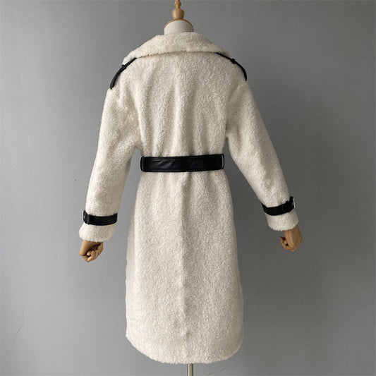 Thick Warm Genuine Sheepskin Shearling Jacket With Real Leather Belt Fashion Women Teddy Bear Shearling Sheep Coat